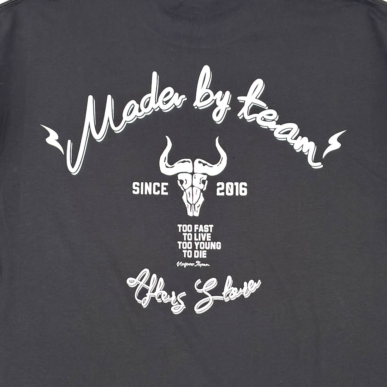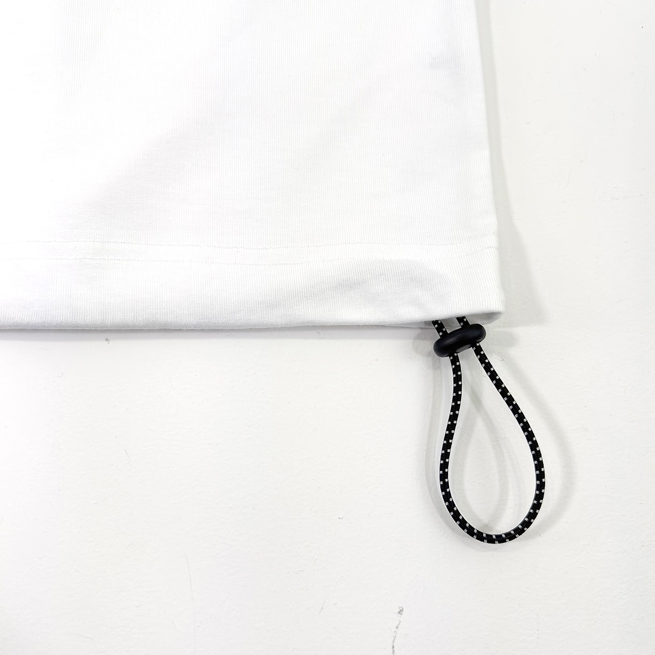 6.5オンスのコンパクトコーマ糸を使用したドローコード付きコットンTシャツ。左胸、バックにシルクスクリーンプリント。左袖にAFTERSネーム。