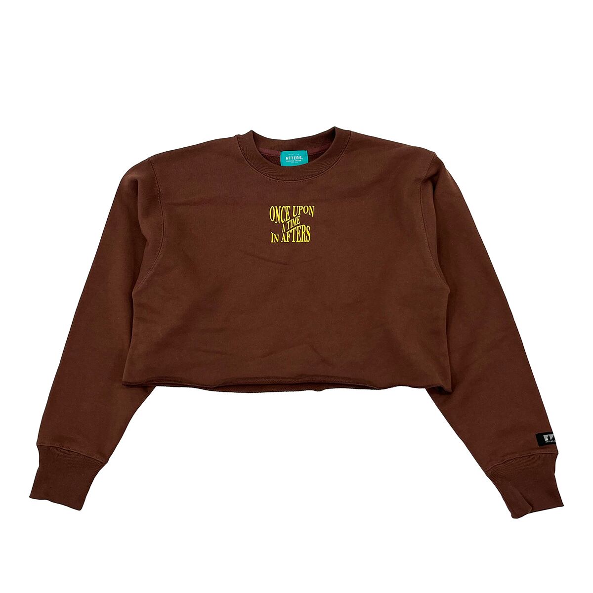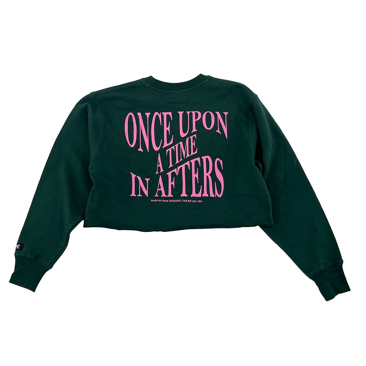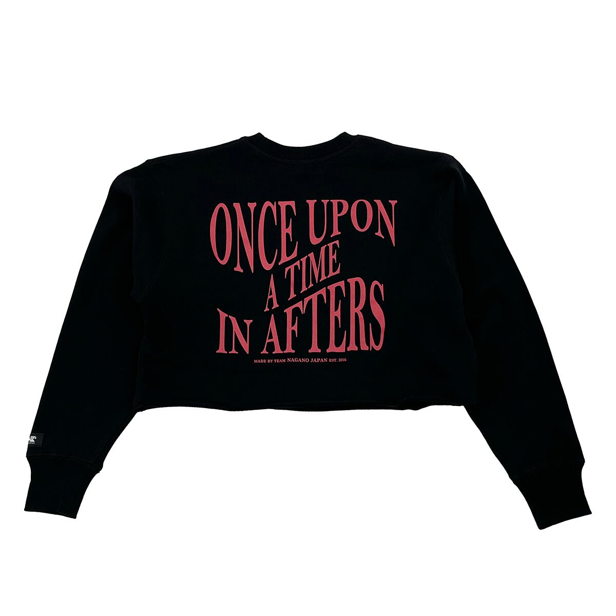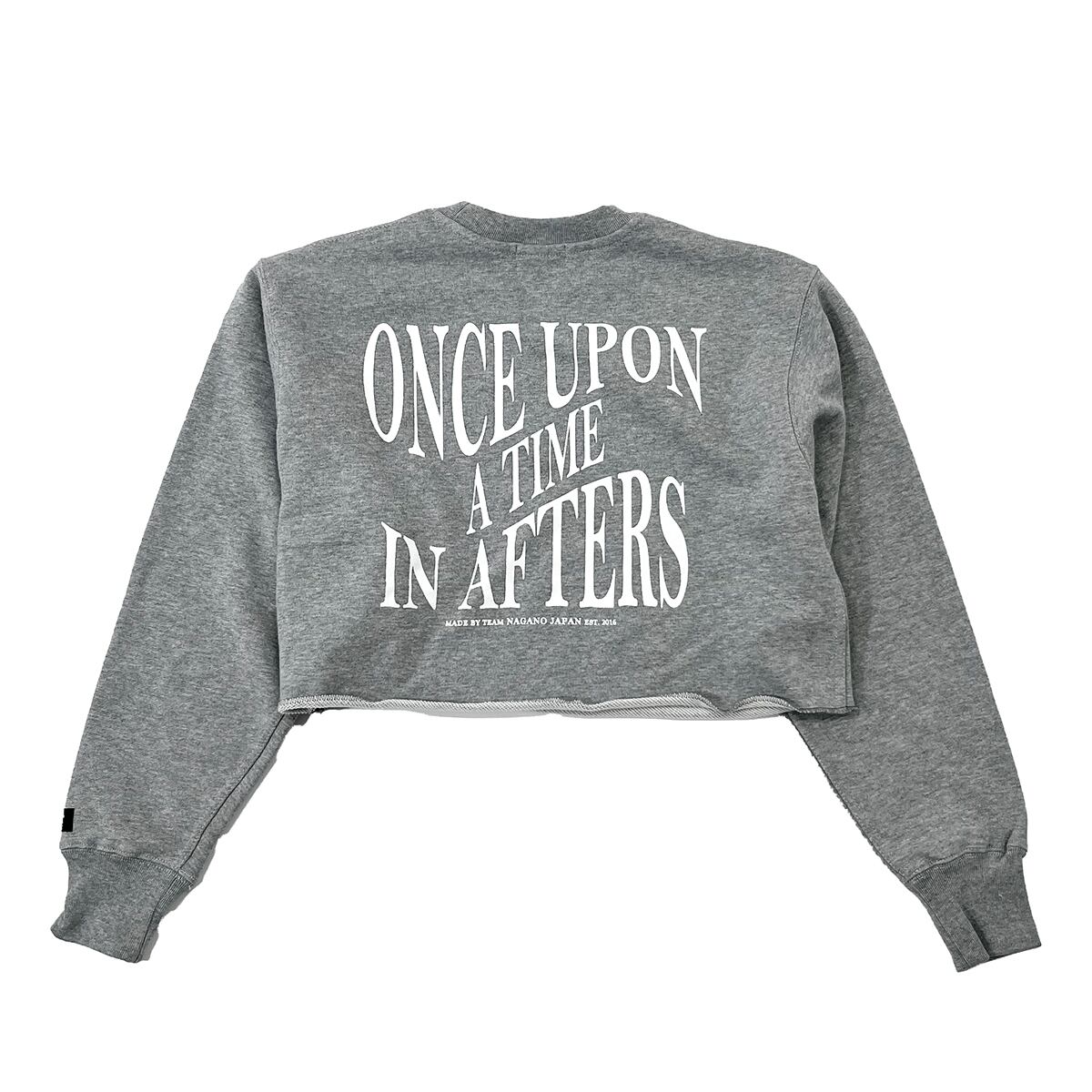 12.7オンスの裏パイルスウェット。ショート丈仕様。フロント、バックにシルクスクリーンプリント。左袖にAFTERSネーム。