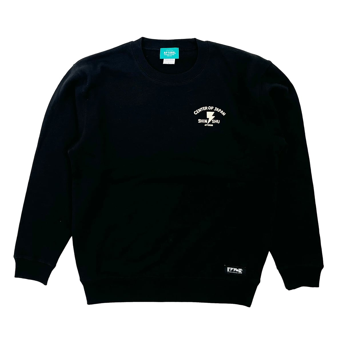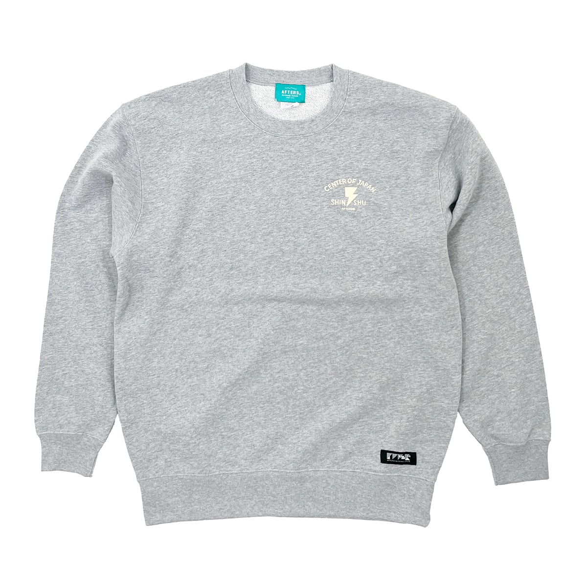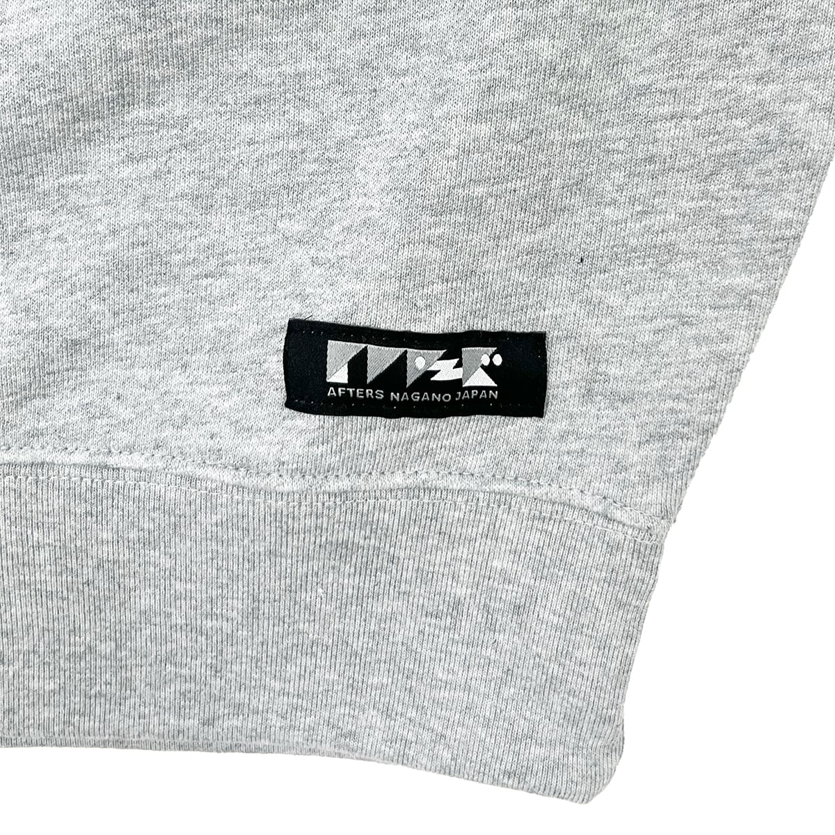 吸水性・伸縮性の優れた裏パイル地に、襟リブ・袖口・裾口にダブルステッチを施した、丈夫さとリラックス感を兼ね備えた10オンスのスウェット。フロントとバックにシルクスクリーンプリント。AFTERSネーム。