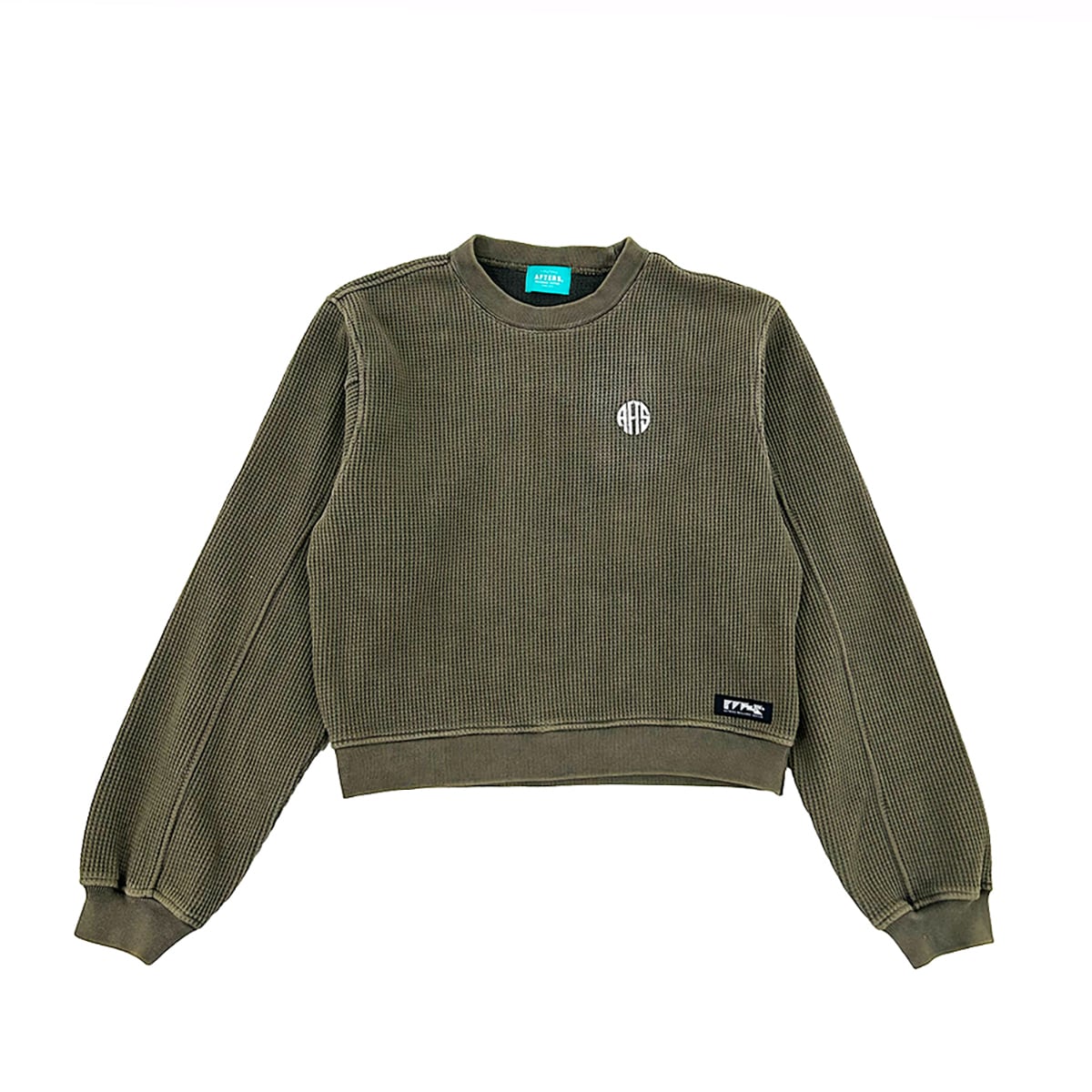 ピグメント加工を施した肉厚ワッフルスウェット。裏地はフリース仕様。ショート丈でハイウエストのパンツとのスタイリングもおすすめ。フロントにCIRCLE LOGO刺繍。AFTERSネーム。