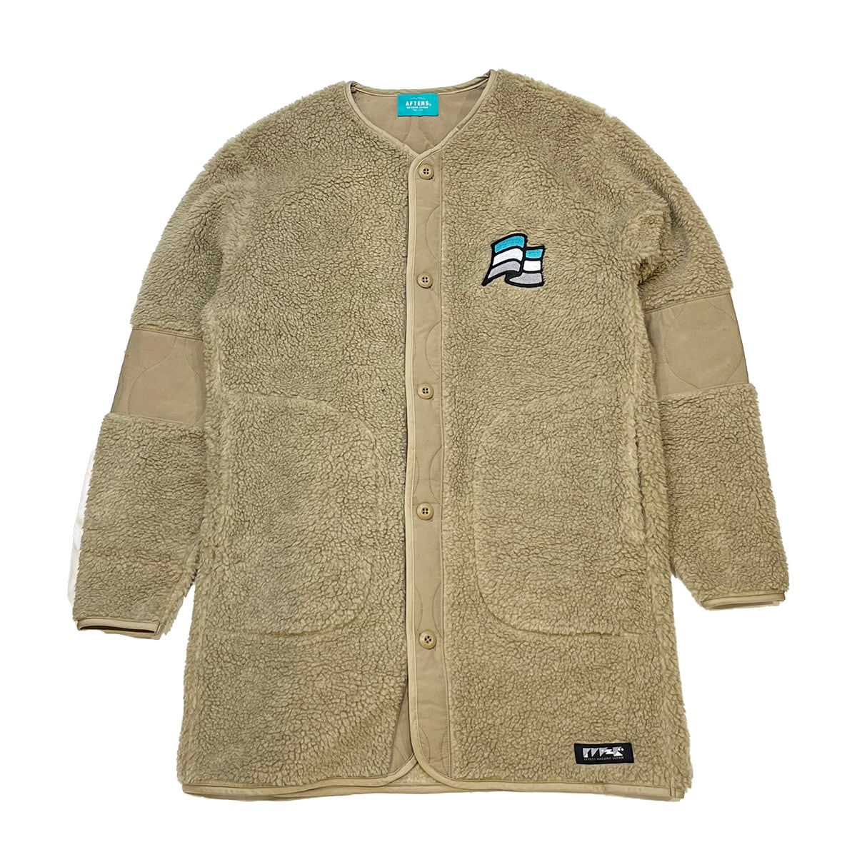 イタリア製のトスカーナボアを日本で縫製した、ロングボアジャケットです。フロントにFLAGワッペン。AFTERSネーム。
