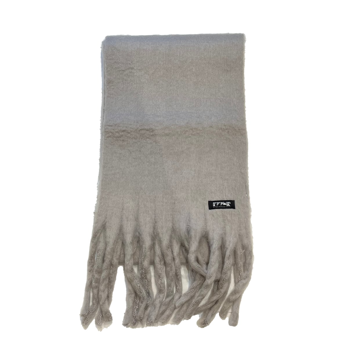 肌触りが柔らかくてしっかりした厚手のモヘアニットマフラー。大きめのサイズ感なのでブランケットとしてもお使いいただけます。手洗い可能。AFTERSネーム。