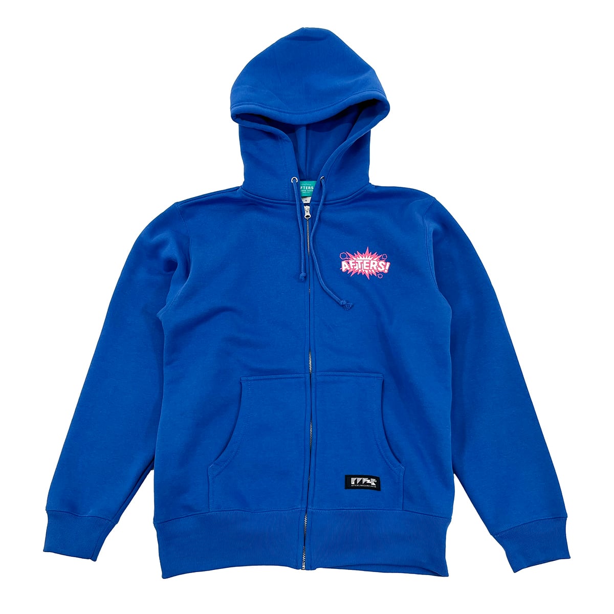 10.0オンスの裏起毛ジップフーディー。フロントとバックにシルクスクリーンプリント。AFTERSネーム。