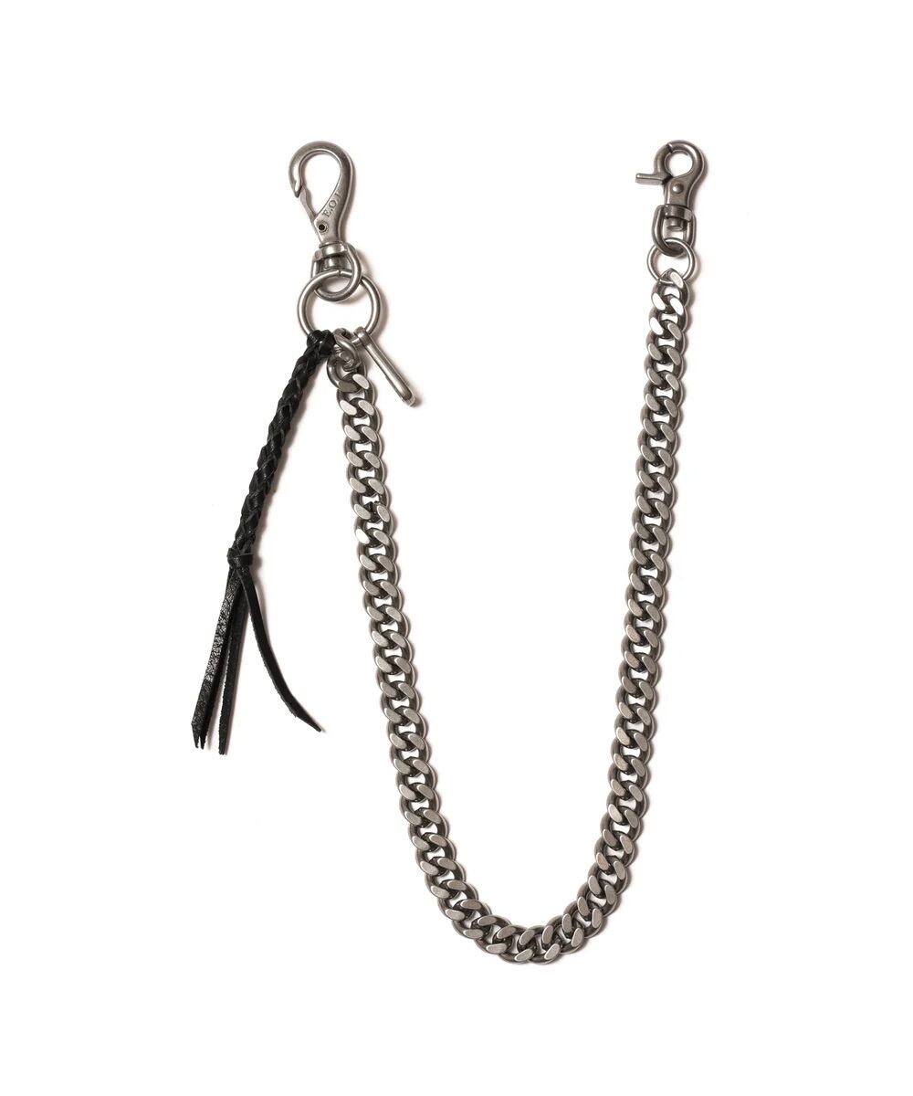 ウォレットチェーンとしてはもちろん、ベルトループに掛けてアクセサリー感覚でコーディネートできるアイテム。シンプルなスタイルに重厚な雰囲気を加えてくれる一本です。