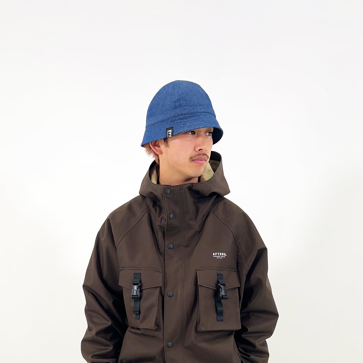 8ozのデニム素材を使用したオリジナルパターンのセーラーハット。鍔にAFTERSネーム。