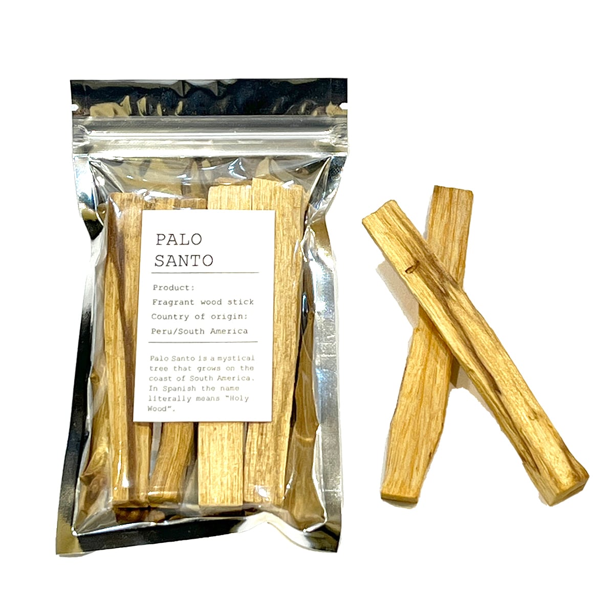 南米の香木パロサントの4本入りパック。インカ帝国の時代からシャーマンが民間療法や儀式に用いてきたパロサント。その香りには邪気を祓い、場を清める力があるといわれ、数百年もの間、聖なる木として使用されてきました。現在でも教会の薫香として、神聖な木として使用されています。またNYなどではヨガや瞑想を行う前の空間浄化や、お部屋の芳香剤として使われるなど、広がりを見せています。