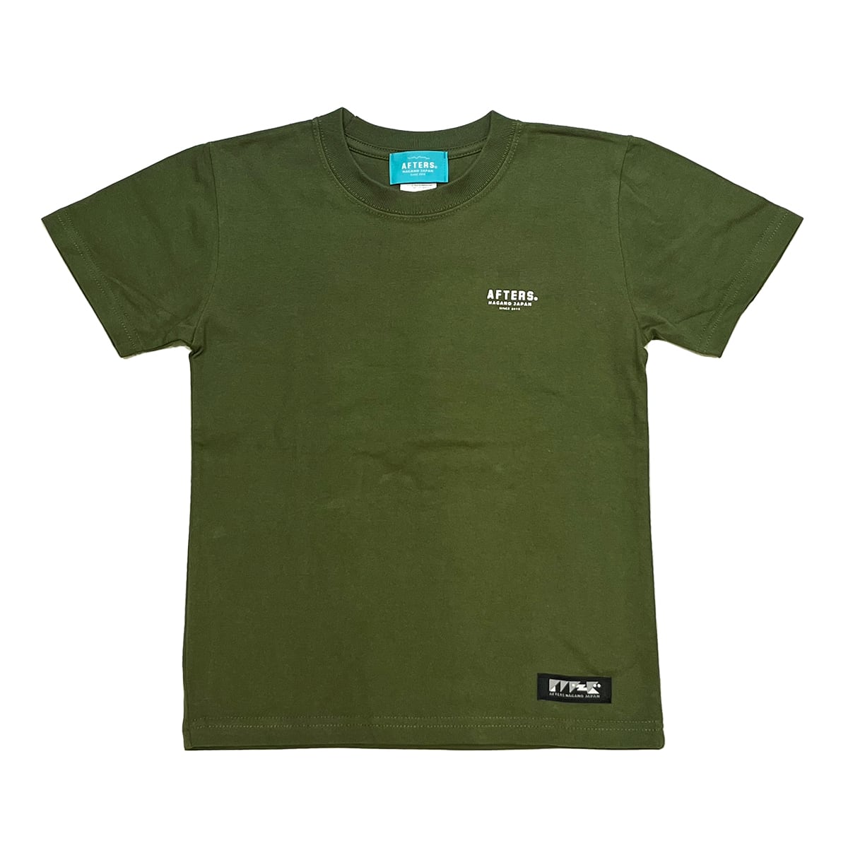 5.6オンスのジュニアコットンTシャツ。フロントにシルクスクリーンプリント、左裾にAFTERSネーム。