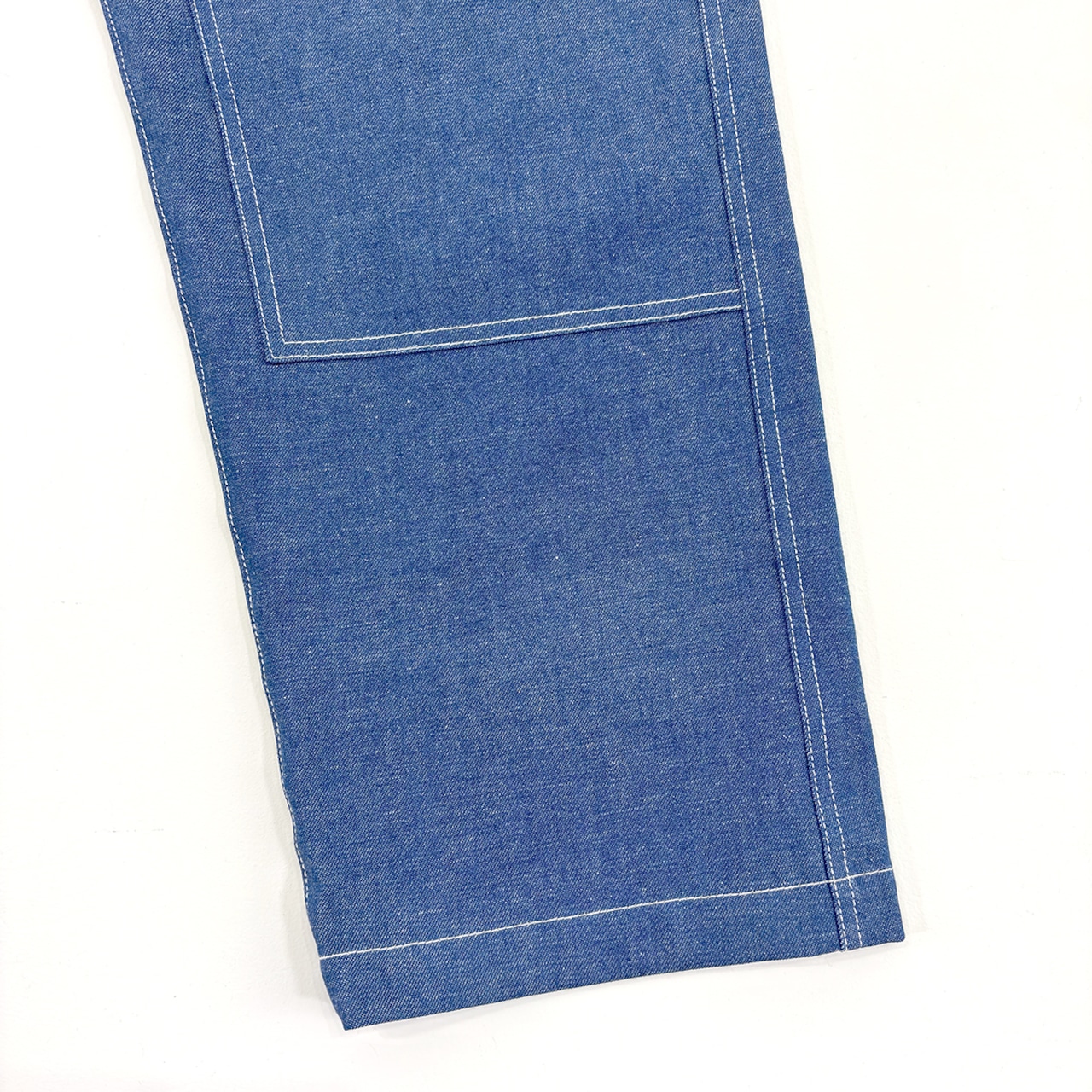 素材は綿100%の8ozデニム生地を使用。定番のHINOKI EASY PANTSのパターンを使用したDOUBLE KNEE仕様。ストレッチ性は無いものの、動きやすさに優れたパターンのため、窮屈感もなく気持ちよく着用できます。洗いを繰り返すことで生地が柔らかくなり、より穿き心地が良くなるのも特徴です。