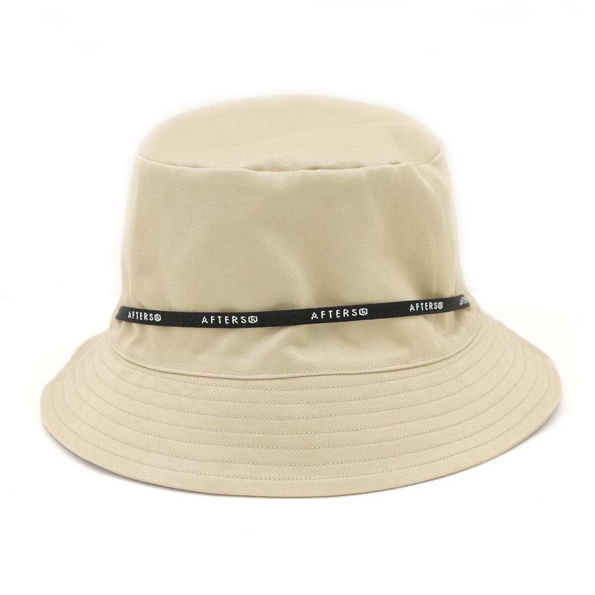 AFTERSのバケットハット。BEIGEは高密度のチノクロス、BLACKは肉感のある厚手のカツラギ素材を使用。オリジナルドローコード。フロントにAFTERSネーム。