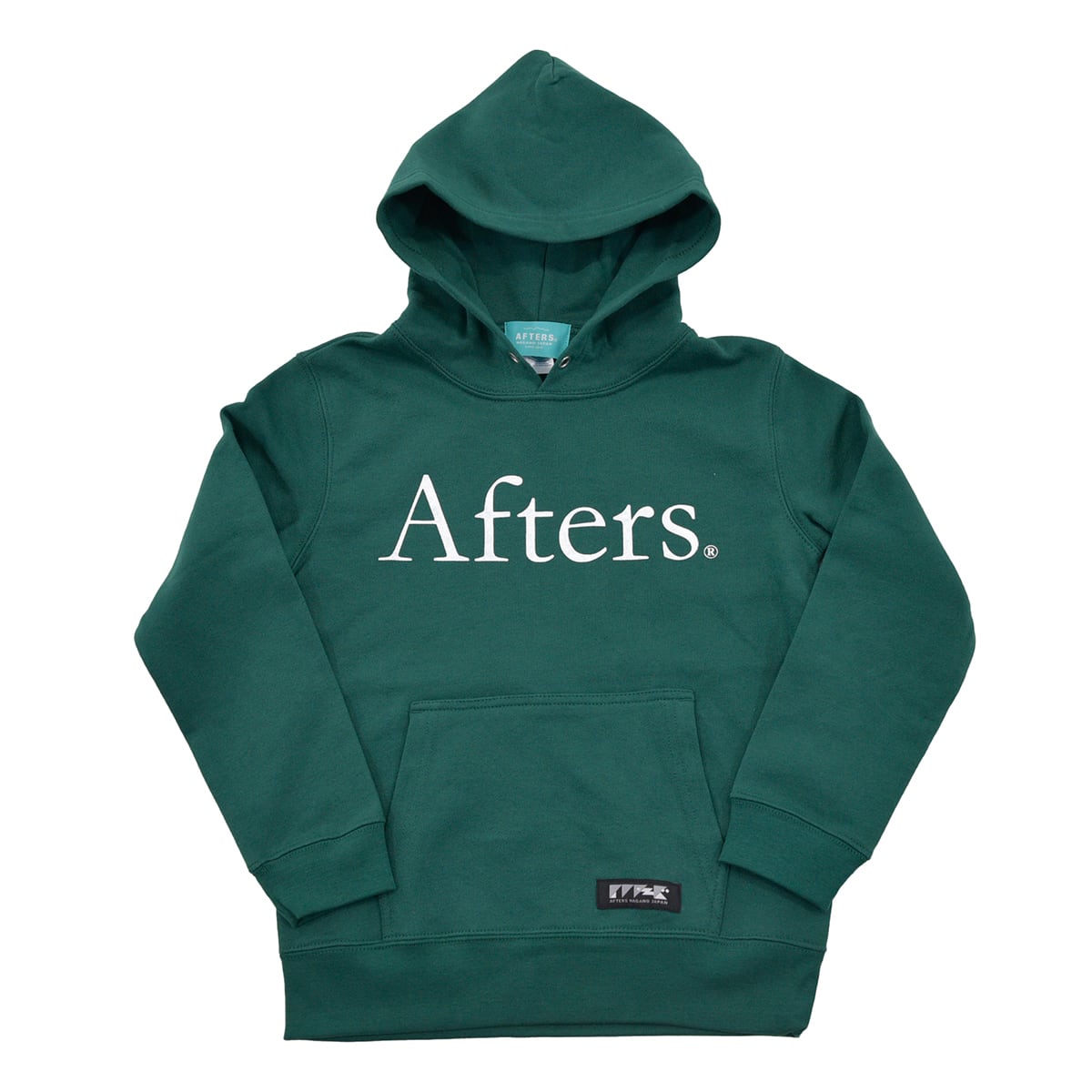 AFTERS®︎のメインロゴをデザインした10.0オンスの裏パイルフーディー。程よい厚さが特徴で春、秋、冬の3シーズン着回せる便利なアイテムです。
