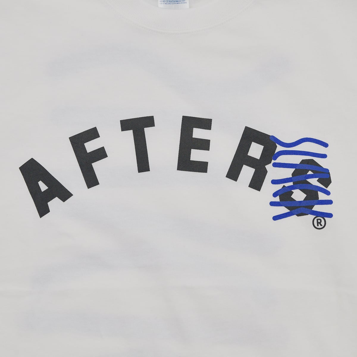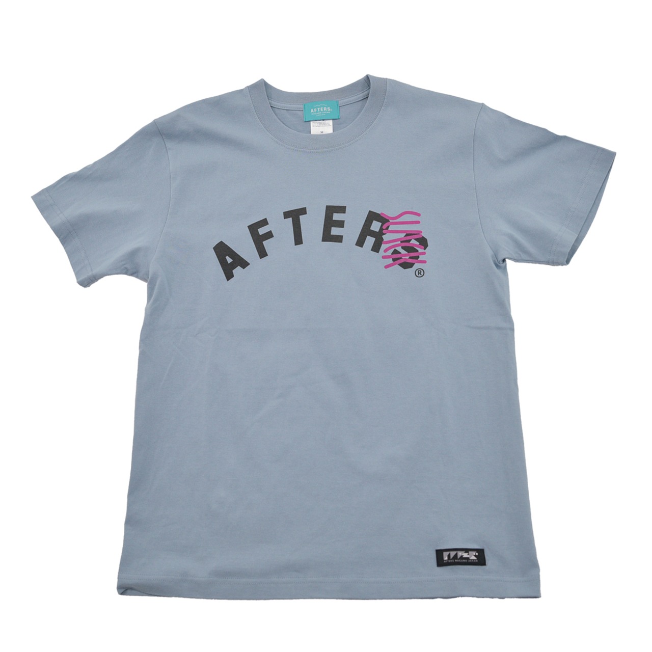 フロントとバックにシルクスクリーンプリント、左裾にAFTERSネーム。